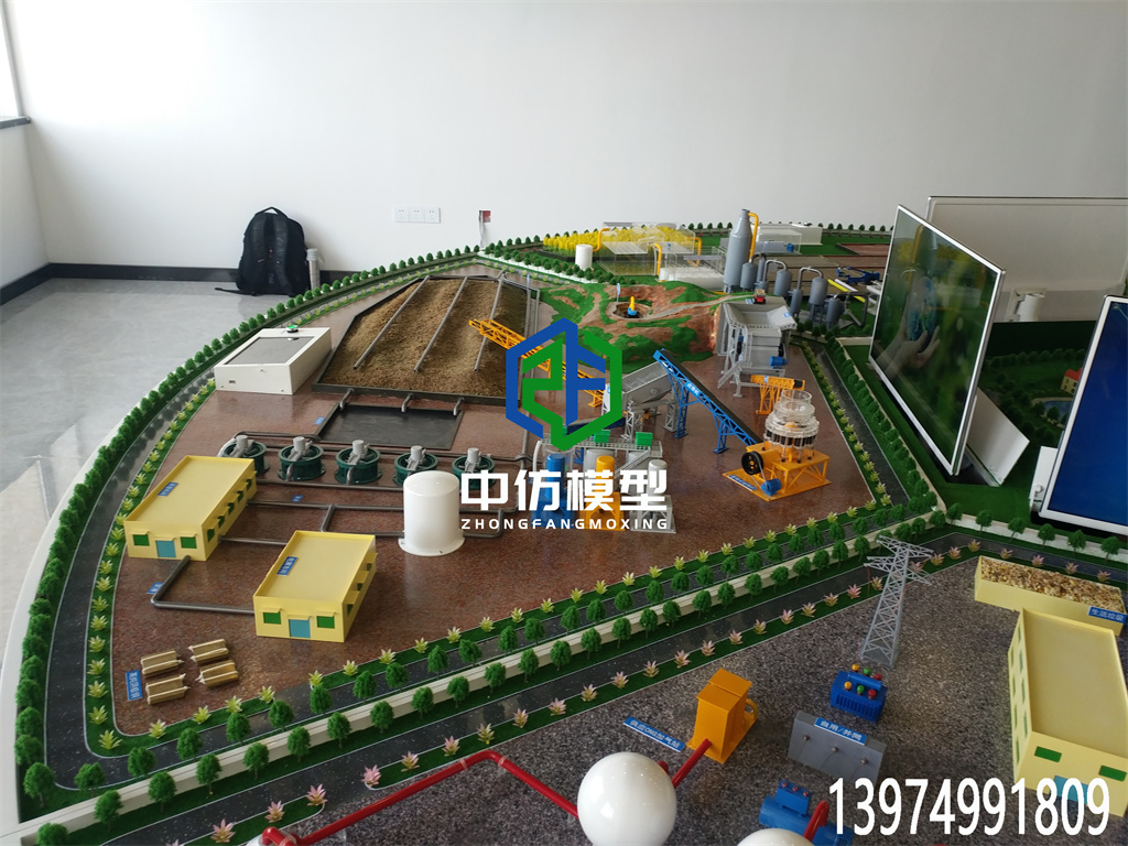 互动展区(声、光、电演示,透明显示屏视频展示,配备展,直径4.8米。)a、固体废弃物资源化利用工程模型 一套b、土壤修复工程模型 一套c、生态湿地模型 一套 d、生物冶金工程示范模型 一套e、污水处理厂模型 一套配套透明显示屏(32寸) 五套配套触摸屏控制系统 五套